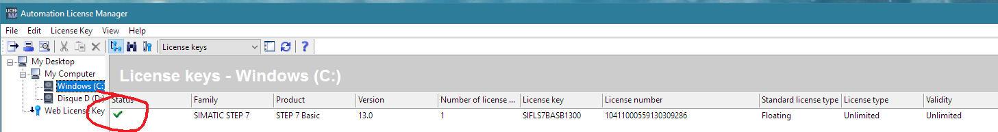Pour la licence WinnC oui, les 2 logiciels sont bien installés, mais je n'ai que la clé pour STEP 7 (bien possible que ce soit normal, la boite ...