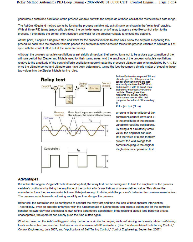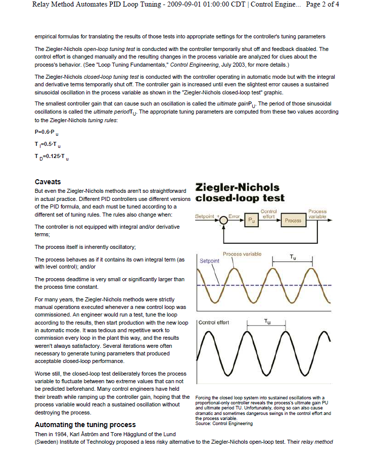 J'ai utilisé la méthode de Åström-Hägglund décrite dans les photos ci jointes, elle fonctionne bien et permet de gagner du temps par rapport à Ziegler et Nichols. Elle permet aussi de ne pas trop "pousser" le système et de garder le contrôle sur le process.