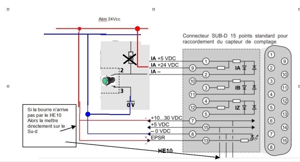 Toujours aucunes détection du débit et défaut I/0 clignotant lorsque je ne connecte pas le HE10. Lorsque je connecte le HE10, plus aucun défaut mais aucune détection de Front montant. Pourtant le IA est clignotant dans la fenêtre de config, cest quil détecte quelque chose.