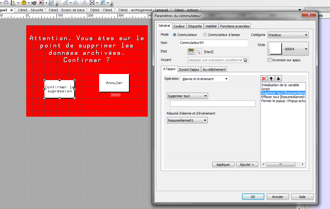 ne peut s'écrire que dans une action Script , de l'écran ou se trouve le "résumé d'alarmes01"