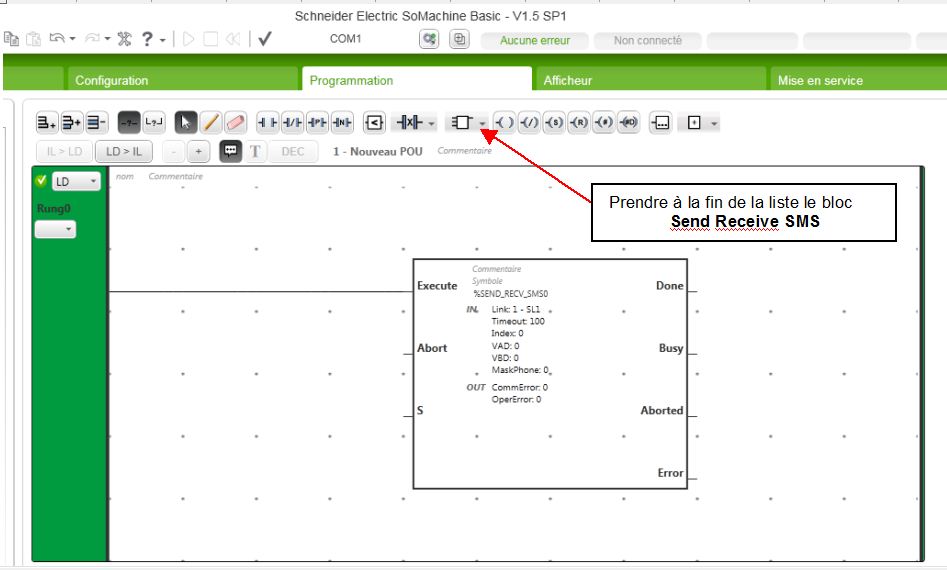 %SEND_RECV_SMS0 affecté à SL1 ou à SL2 seul dans un Rung. Le simulateur ne marche plus (plus de scrutation, comme figé) si quelqu'un à le SoMachine Basic sous la main pour tester ça, car ça ne le fait qu'avec ce bloc seulement, comme c'est bizarre , vous avez dit bizarre ?