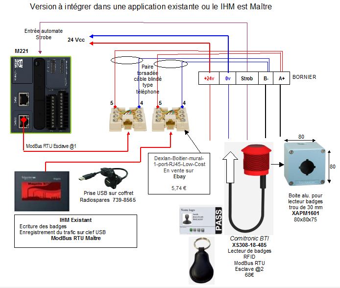 Je vois. C'est très intéressant. Je pense que l'ihm doit être là en permanence parce qu'il peut arriver que des badges soient perdus ou déprogrammés et dans ce cas l'ihm permet de programmer. Je garde ce schéma sur le coude on ne sait jamais. Effectivement si l'ihm est maître et l'option n'est pas retenue les esclaves se retrouvent sans maître et ne parleront jamais vu qu'en Modbus ils n'ont droit qu'à répondre.