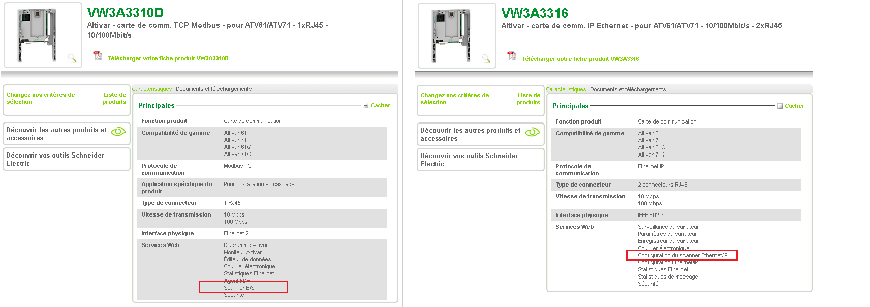 Lors de son remplacement je me suis aperçu que la carte com était différente ( au lieu d’avoir une vw3a3310 il a était mis une vw3A3316).