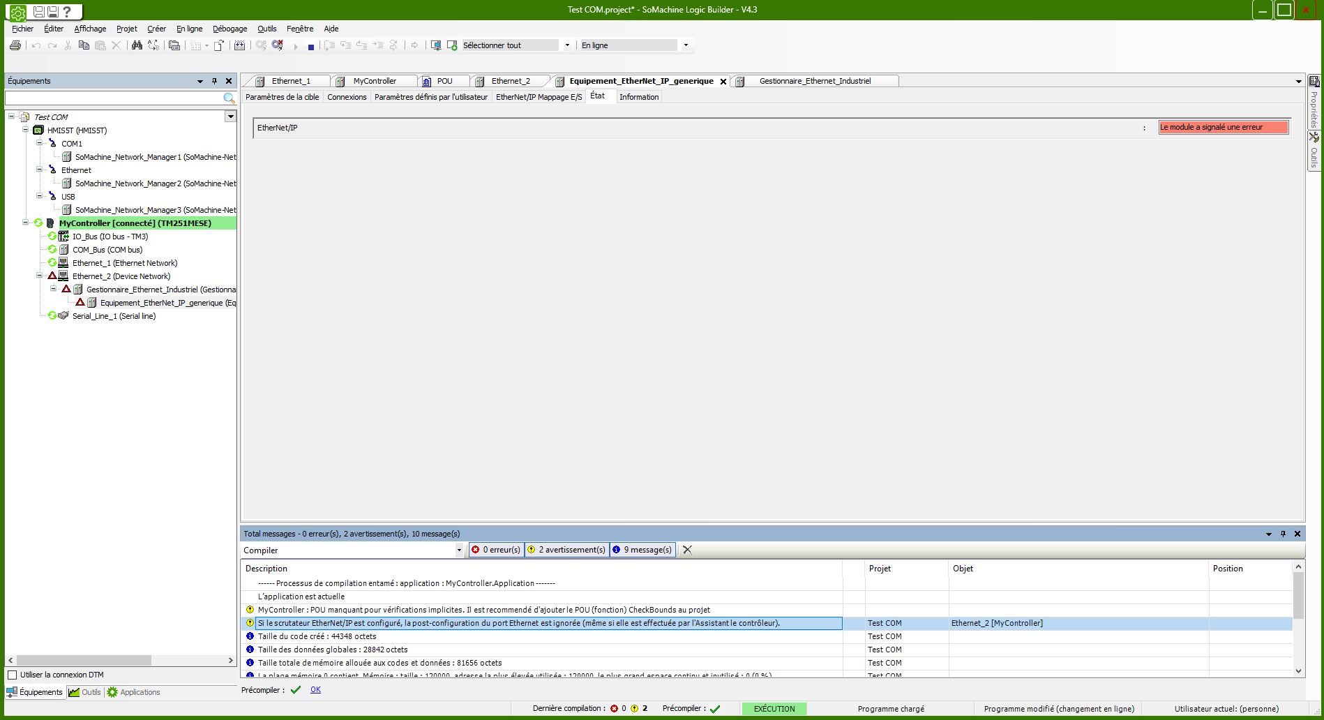 Sur mon port ETH1, je mets un petit écran Magelis avec le réseau SoMachine Network (en Modbus).