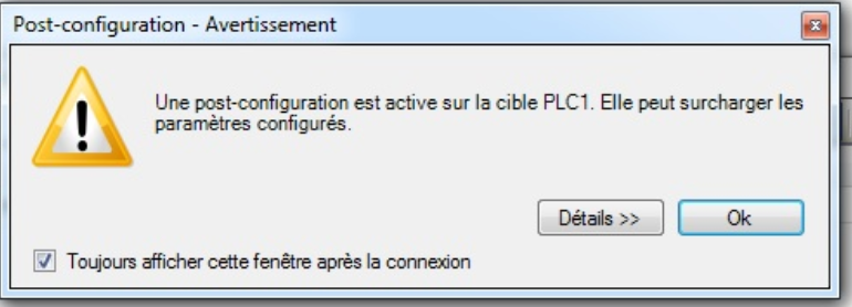 La post configuration doit avoir des paramètres différents de ceux de ton projet Automate. Le message c'est un avertissement.