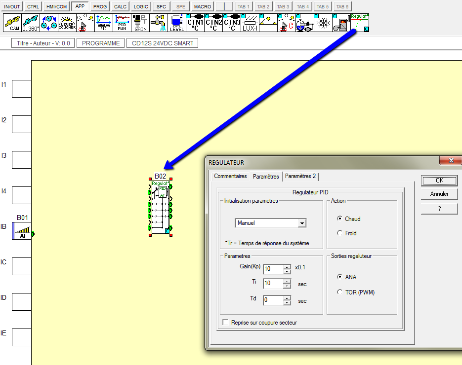 Au final j'ai réussi sans le bloc PID, j'ai simplement utiliser des fonctions logique ET / OU et des comparateurs de valeur en zone