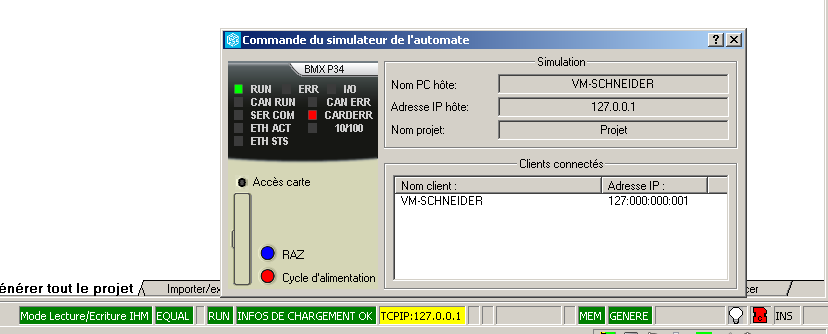 C’est du côté de ta machine virtuelle qu’il faut chercher. Le prg et le simulateur fonctionnent bien