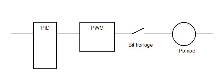 le PWM va être à 1 pendant 5secondes, puis à 0 pendant 5s. ce qui fait que la pompe va doser (en cadence avec le bit horloge) pendant 5 secondes, puis plus rien, puis recommencer... Le client voulait 'lisser' les pulses au lieu d'en faire plein d'un coup, puis plus rien...
