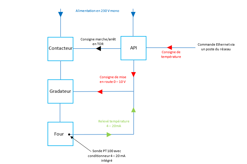 J'ai une sonde pt100 qui me permet de mesurer la température et un gradateur en sortie pour piloter le four.