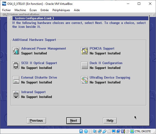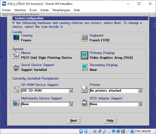 Vu que c'est pas forcement simple pour quelqu'un qui à l'habitude des machine virtuelle, je te met la marche a suivre qui m'a permis d'installer OS/2 Warp 4: