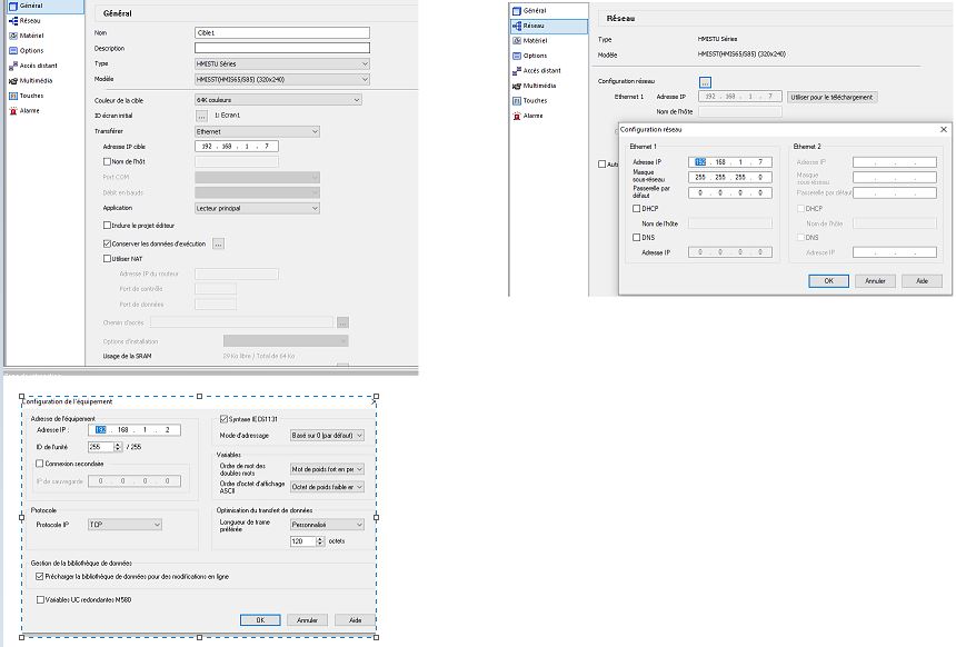 Je précise que l'adresse IP de l'automate est 192.168.1.7 et celle de l'IHM 192.168.1.2