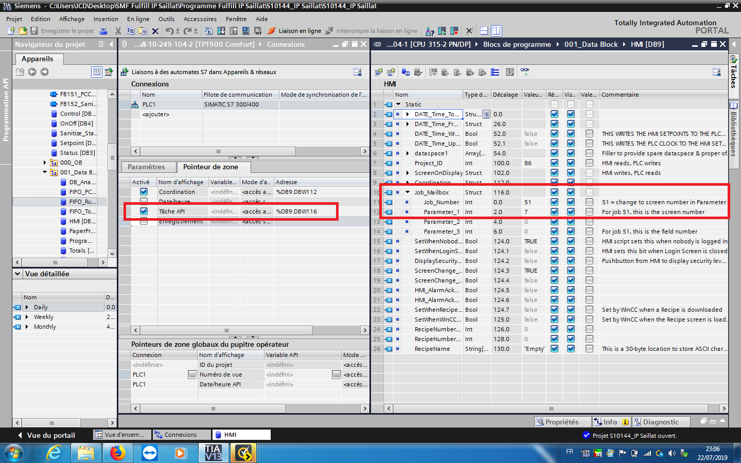 Je me retrouve donc avec un S7-1200, un KTP400 et un variateur G120Truc, tout en profinet. Un grand bonheur...
