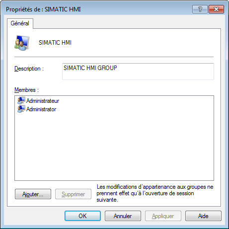 Ensuite je fais comme indiquer sur le site SIEMENS, avec les utilisateurs du GROUP SIMATIC HMI