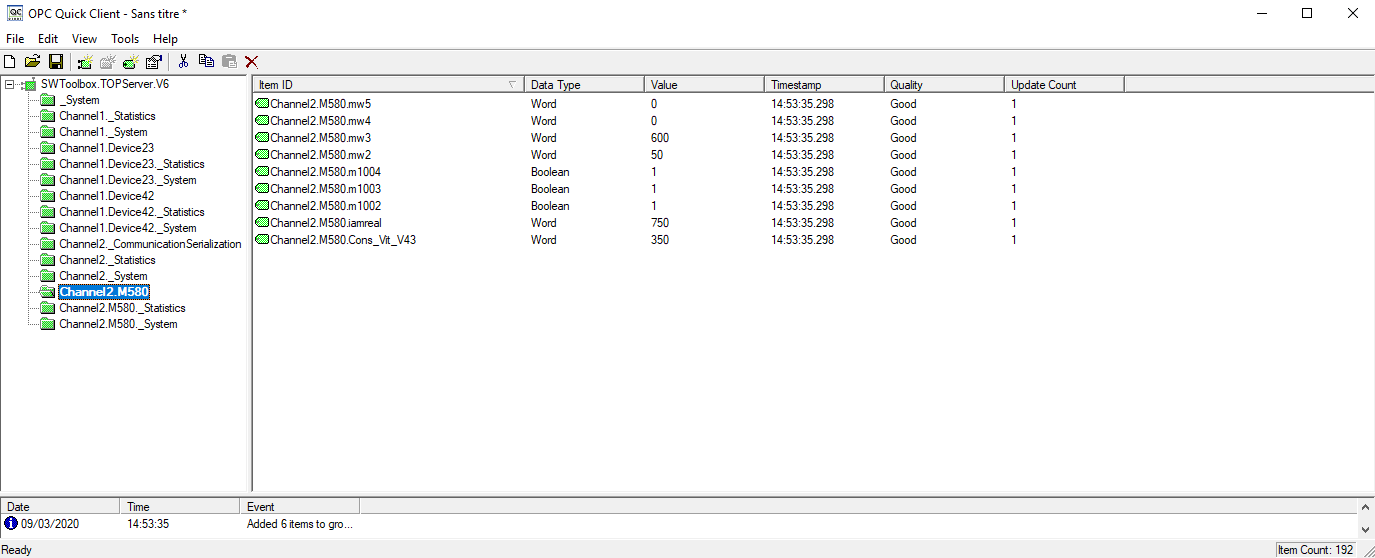 J'ai essayé, ça ne change rien. ça communique avec l'opc, mais de top server à intouch, pas du tout...