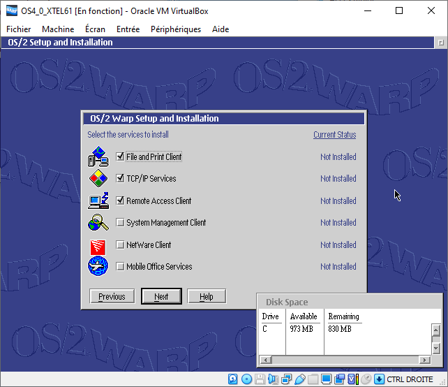 Il se trouve sous "C:\Program Files\Oracle\VirtualBox\VBoxGuestAdditions.iso" - Démarrer la machine virtuelle, dès que l'écran avec le petit carré blanc suivi de OS/2 s'affiche, appuyer sur ALT et F1.