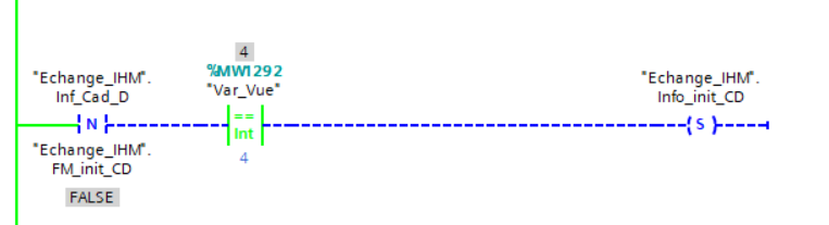 Ce qui n'est pas normal, c'est sur l'image où le contact-|N|- est vert, la mémoire "Echange_IHM".FM_init_CD est à l'état FALSE alors qu'elle devrait être à TRUE.