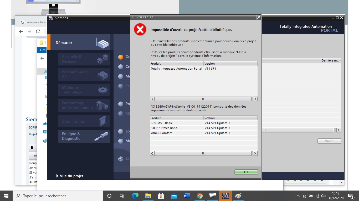 si vous le permettez je voudrai vous solliciter quant à un problème que je rencontre en voulant ouvrir un programme compressé en .zap14 ; j'arrive à le désarchiver via TIA Portal V14 mais en voulant ouvrir le .ap14. je reçois le msg d'erreur en attache PJ1