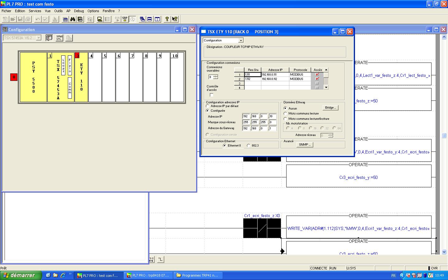 Je suis en train de mettre en œuvre une com Modbus TCP/IP entre un TSX 57 et des variateurs Festo.