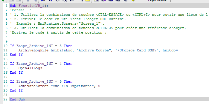 Dans mon IHM je veux pouvoir lire ces étapes et lancer des fonctions systèmes de l'IHM qui permettant de copier une archive vers un stockage externe.