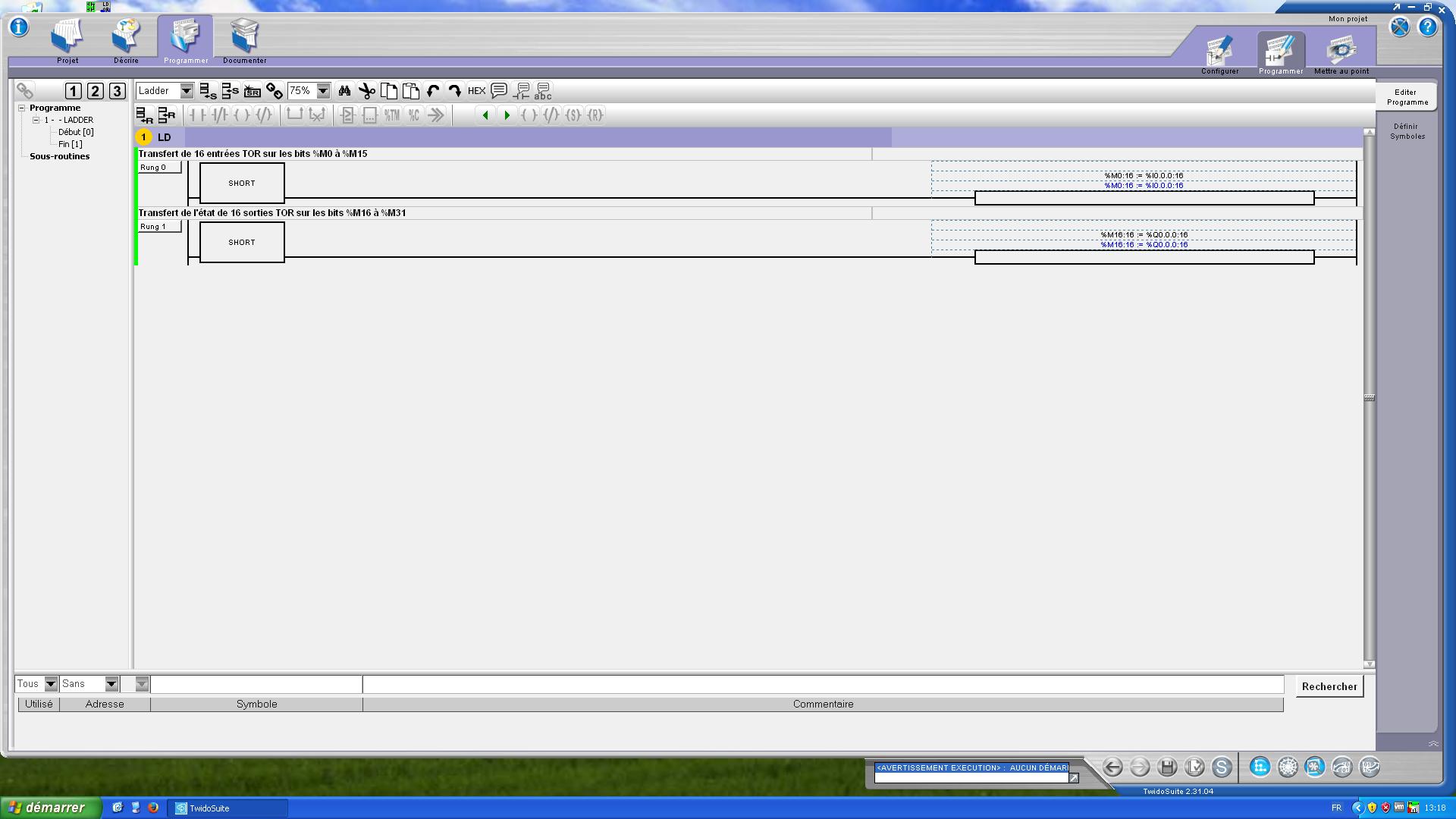 ->Puis les information des voyants vert et rouge sur les Bits %M12 et %M13