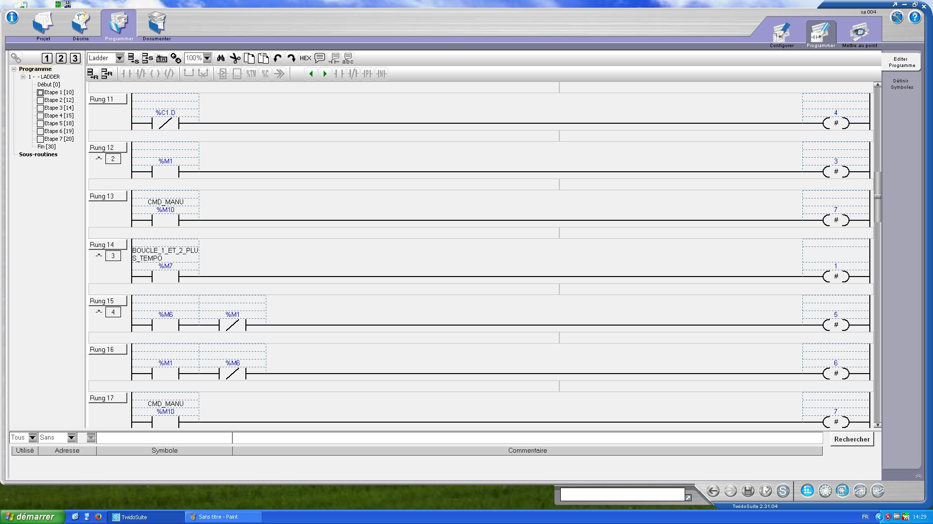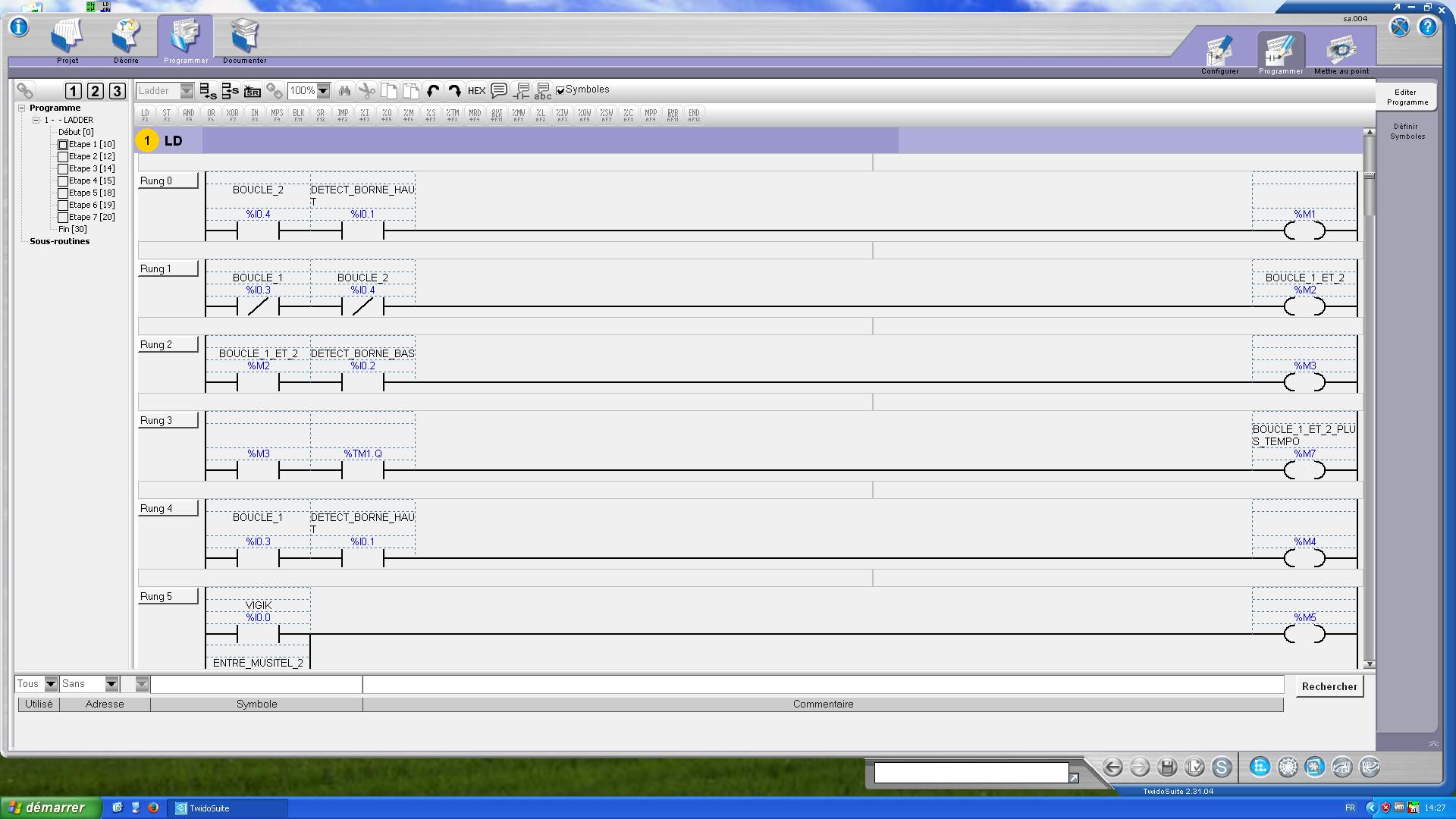 Ce programme n'est qu'un élément de réponse ... Je te recommande de t'en imprégner et de le comprendre, Twido n'est pas très compliqué.