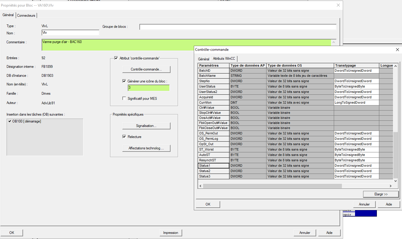 Bonjour à tous, nouveau dans PCS7 je cherche un moyen de récupérer l'état manu ou auto des objets APL(Vlv, Motl) sur une vue. Afin d'afficher sur la vue en question un message ou une icône.