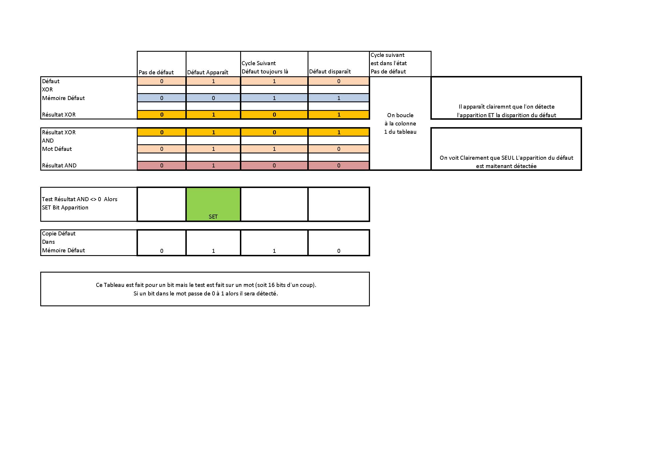 de cette manière, Apparition d'un défaut est à 1 pour un tour de cycle si un défaut apparait dans un des mots de défauts.