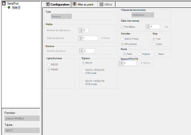 dans ta copie d'écran je ne vois pas de numéro d'esclave RTU, il faut bien le mettre quelque part ?