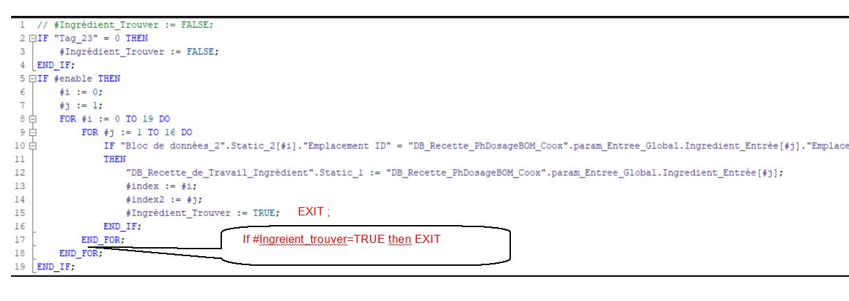 Si OK EXIT (alors sortie de la boucle 0-19 et passe au suivant de la boucle 0-16 SINON je termine la boucle 0-19 et passe au suivant de la boucle 0-16
