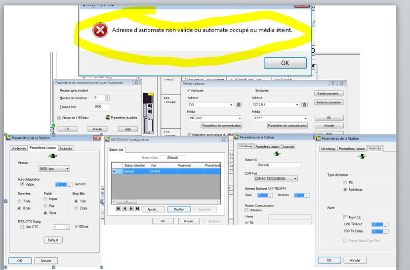 dans cette fenêtre si tu fais MODIFIER (sans modifier) et appliquer , es que le driver Unitelway redémarre bien ???