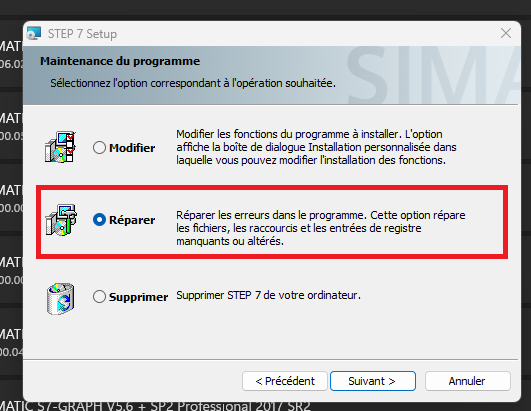 Étape 3 -> Dans la liste des logiciels installés sur le PC, à la ligne " SIMATIC STEP 7 V5.6 + SP2 " cliquer sur les " ... " et " Modifier "