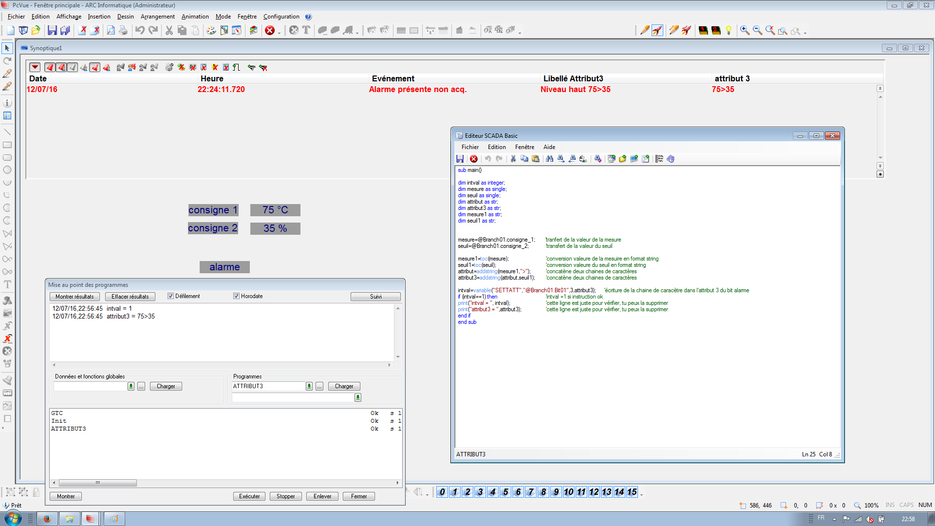 Pour surveiller ton dépassement de valeur, la variable et le seuil étant des variables, tu peut utiliser une expression que tu associe a un bit , c'est plus souple que d'utiliser le système de seuils sur variables "interne" de PC Vue.