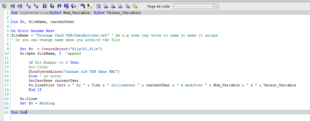 Sub LogUserAction(ByRef Nom_Variable, ByRef Valeur_Variable)