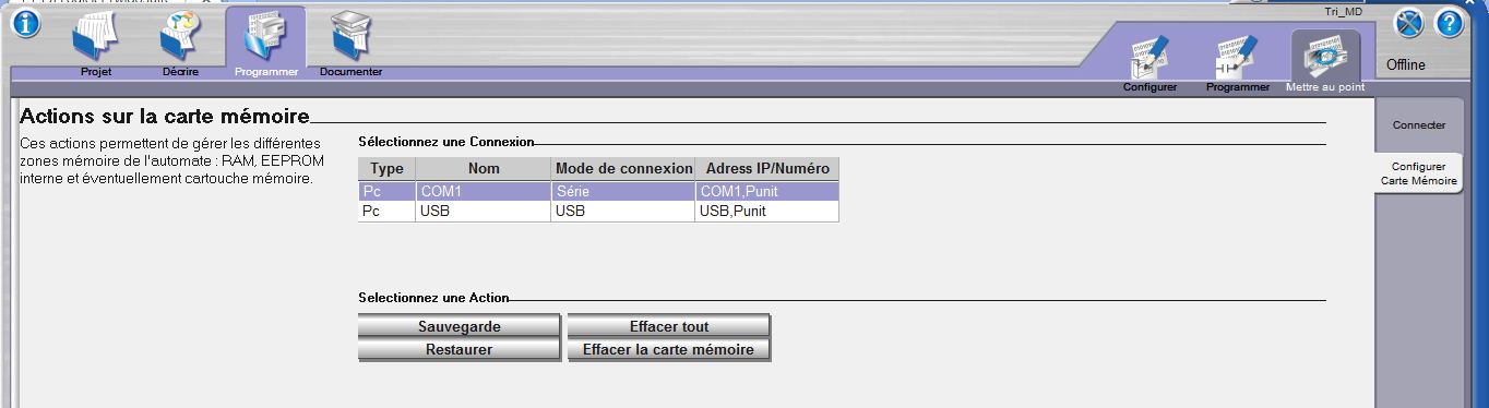 Sur TwidoSuite, j’ai pas trouvé comment sauvegarder et restaurer les Datas (valeurs des variables)