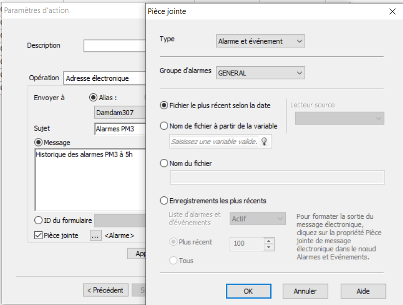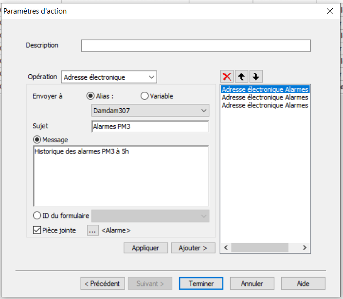 Une fois le fichiers générer je crée une action pour l'envoyer par "messagerie électronique"