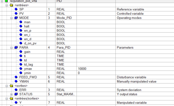 J'aimerai connaître les significations des paramètres des blocs PID afin de comprendre quelle valeurs ou variables y affecter.
