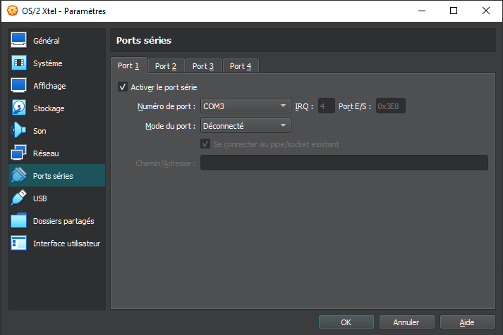 PJ : page de config Virtual Box (mon port com USB est sur le 3 dans le gestionnaire de périphérique)