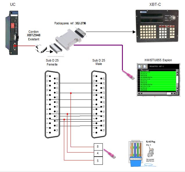 si c'est branché en direct via le cordon XBTZ948 on peut toujours faire un montage labo pour raccorder l'Espion