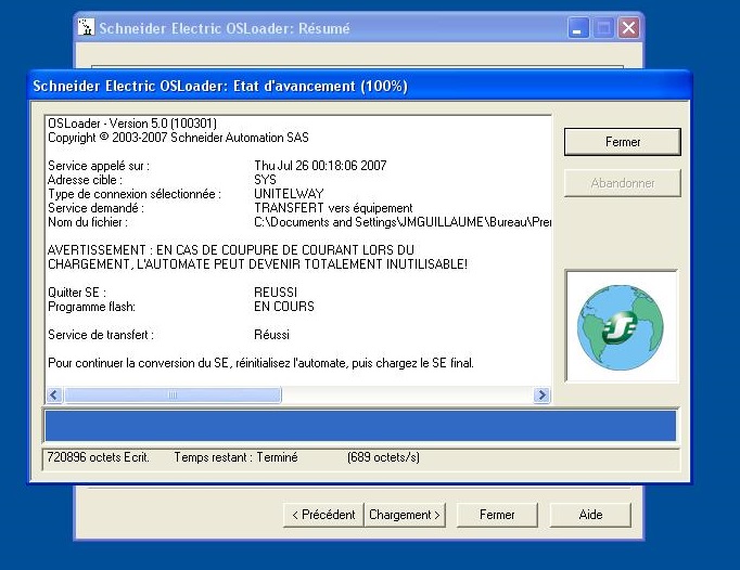 Bonjour, lors de l'essai de la mise à niveau d'un TSX P57203, j'ai rencontré exactement le même problème que vous.mangeurdeplc a écrit : ↑24 mars 2022, 09:37 Bon j'ai enfin reussis a rentrer en com avec l'automate mais maintenant c'est au niveau de l'os loader qu'il y 'a un probléme : essai de connection à un appareil non automate