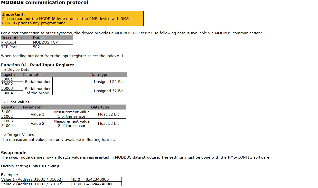 Je vous met ci-joint les parametrage mis dans Modbus doctor et le manuel rotronic.