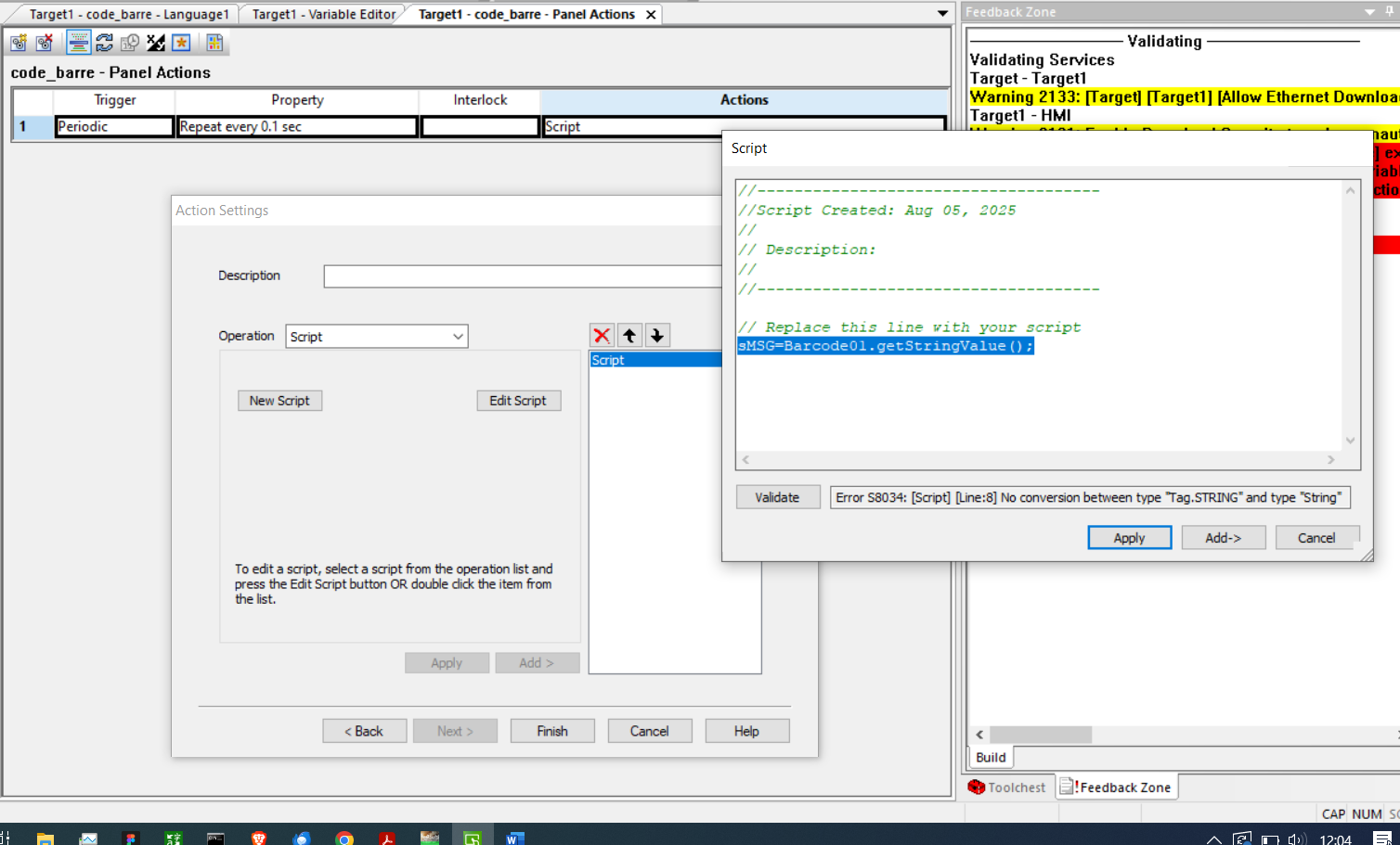 J'ai la valeur du code barre qui s'affiche bien dans mon écran, j'ai essayé de convertir cette valeur string en word pour pouvoir l'avoir dans le m221 mais rien.