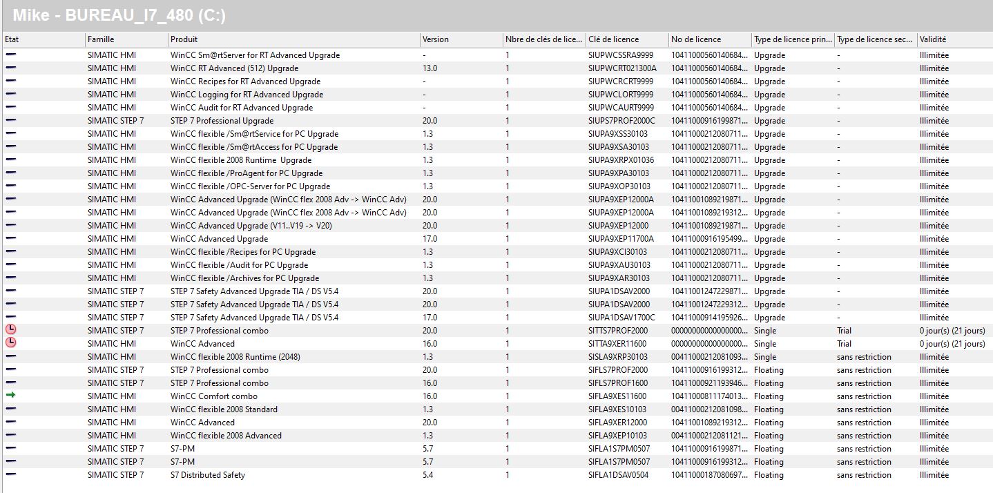 Certains produits installés requièrent des licences. Veuillez démarrer automation licence manager pour installer des licences ou obtenir l’aperçu des licences sur ce pc.