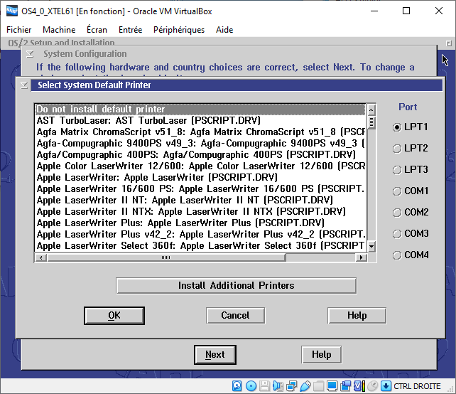 Clique encore "Next" et il te demandera d'installer une imprimante par défaut.