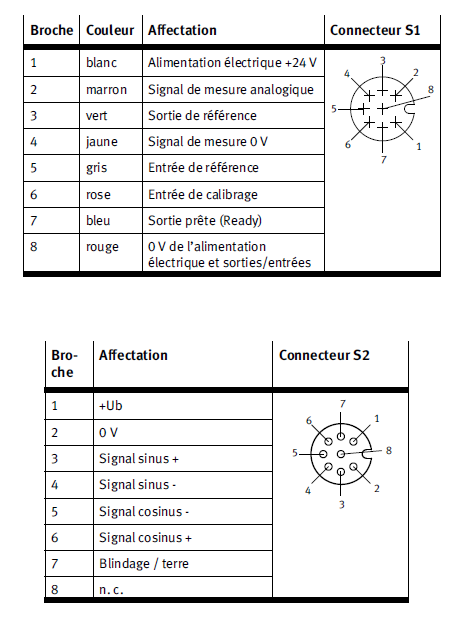 J'ai un vérin double effet de mesure qui viendra toutes les 5 minutes chercher la position. Pour ce faire j'ai un vérin festo qui m'a été imposé, j'ai aussi un petit convertisseur tension-courant DADE-MVC-420. J'ai le câble vérin-convertisseur, seulement je n'ai pas le câble convertisseur-automate étant donné que c'est un 8 pôles. Il m'est possible de me le procurer mais je souhaite d'abord savoir si c'est possible et comment câbler ce câble 8 pôles sur une carte analogique d'un automate.