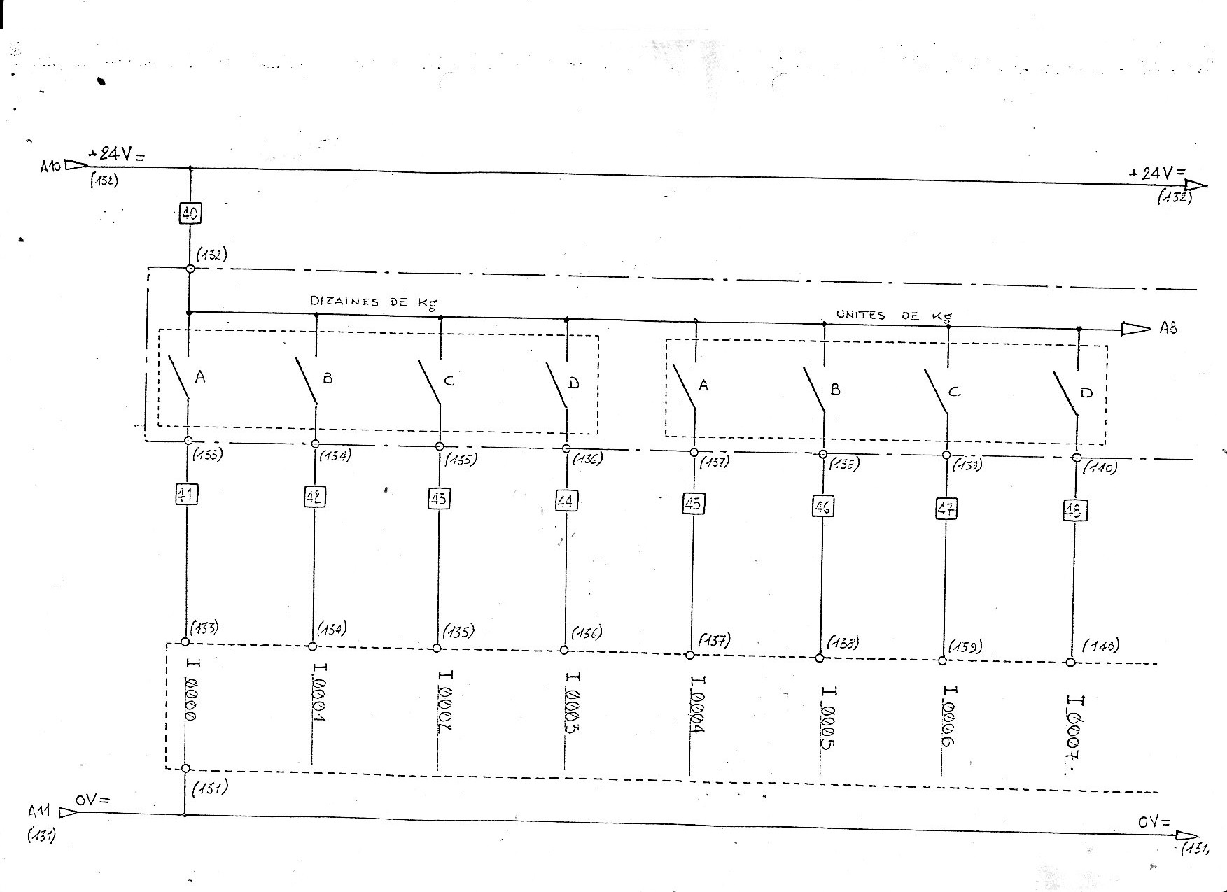 Je met ci joint les seuls schémas a ma dispo concernant la sortie afficheur et les entrées automate.Ca peut aider a comprendre le type d'installation.