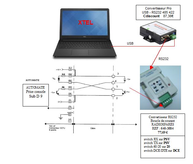 Côté API: tu utilisais un câble RS232? Le cable RS232 etait fournis avec le convertisseur