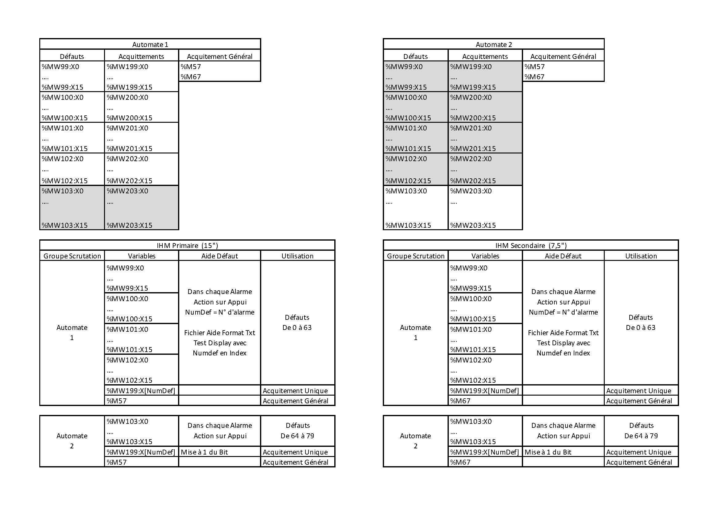 Alarmes de %MW99:X0 à %MW102:X15 (même zone pour les deux automates)