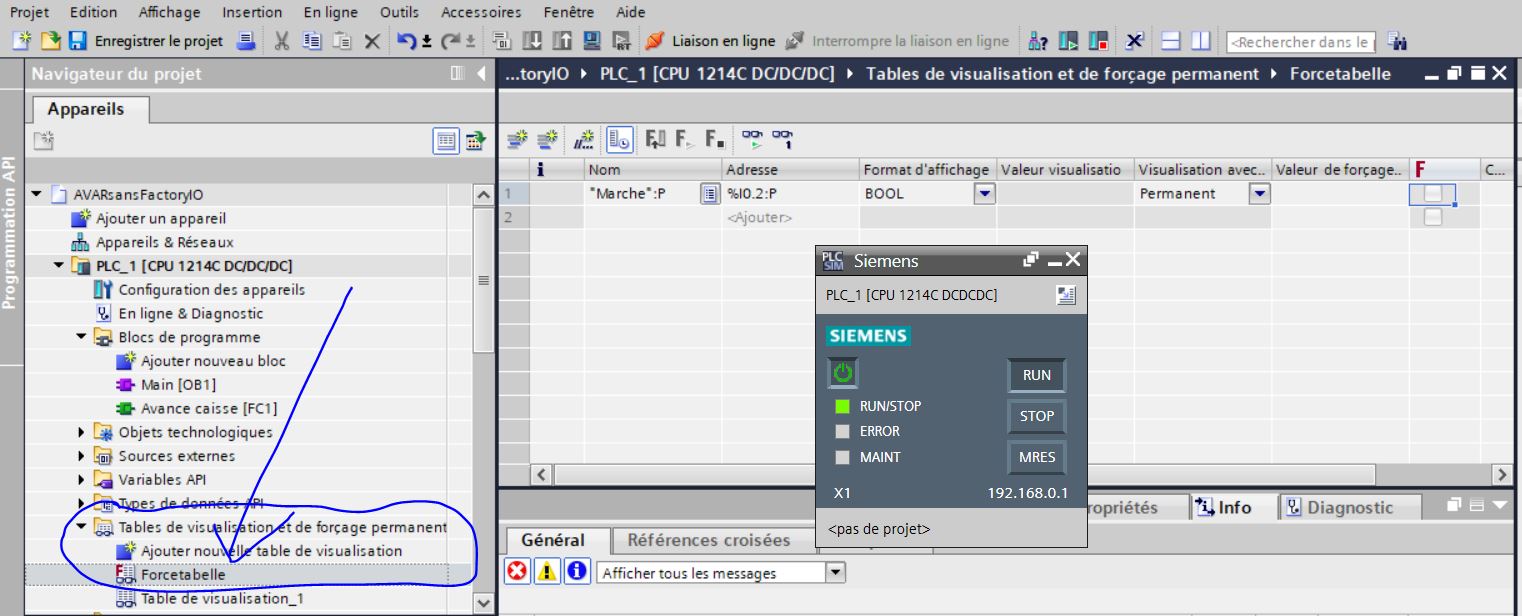 Forçage des entrées sous Tia Portal et PLCSIM