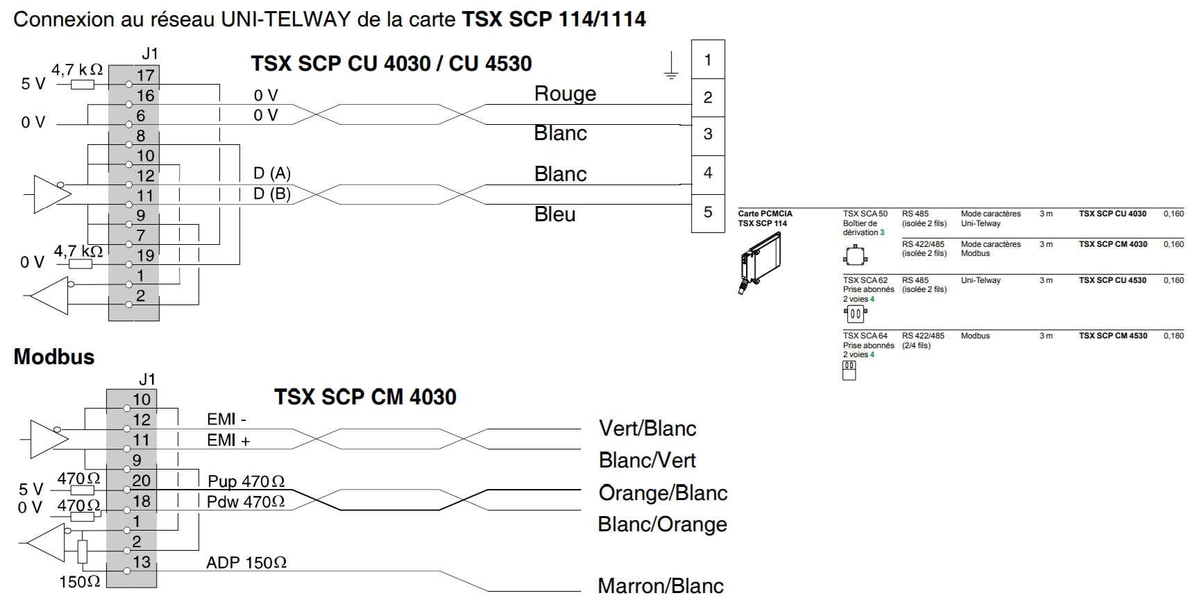 Par contre, si je comprends bien, pour du modbus, je dois passer par le câble TSX SCP CM 4030 au lieu du TSX SCP CU 4030 ?