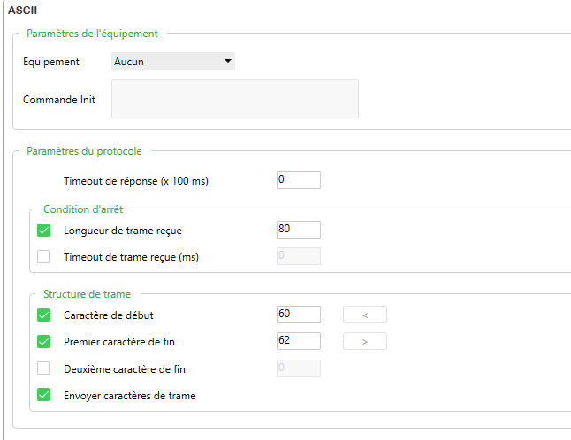 case décocher pour "envoyer caracteres de trame" mais rien de different